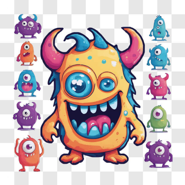 This image features a set of colorful monsters with different shapes and sizes, perfect for customizing designs. Each monster has its own unique shape and color, offering versatility for various projects. Ideal for use on social media platforms like Facebook, Twitter, Instagram, and Pinterest to add a fun and eye-catching element to brand promotion